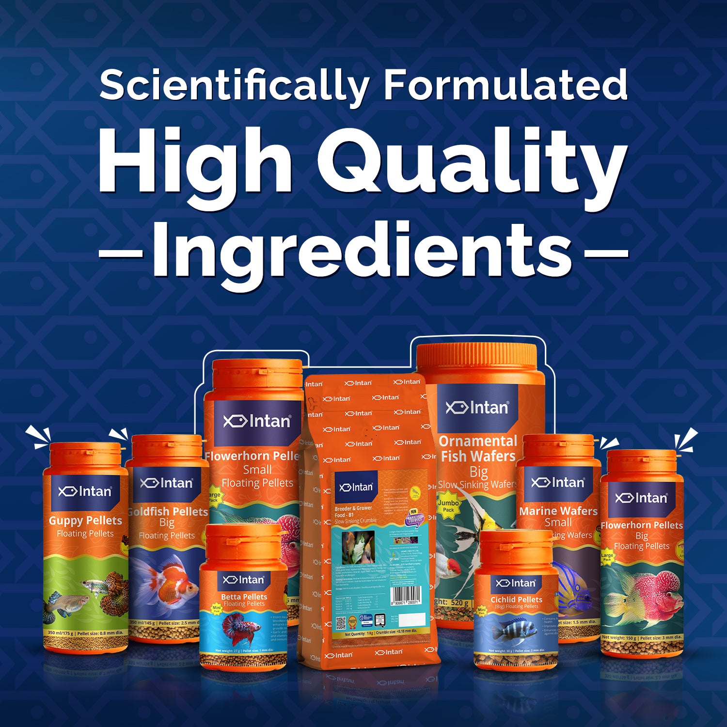 Intan Is A Brand Of Growel Feeds Pvt Ltd That Was Conceptualized With A New Approach To Ornamental Fish Food. Intan Is A Premium Ornamental Fish Feed Developed By The Best Nutritionists And Tested At Our Dedicated State-Of-The-Art Ornamental Research Center. Our Product Line Consists Of Various Feeds Tailored To Meet Species-Specific Nutritional Requirements.